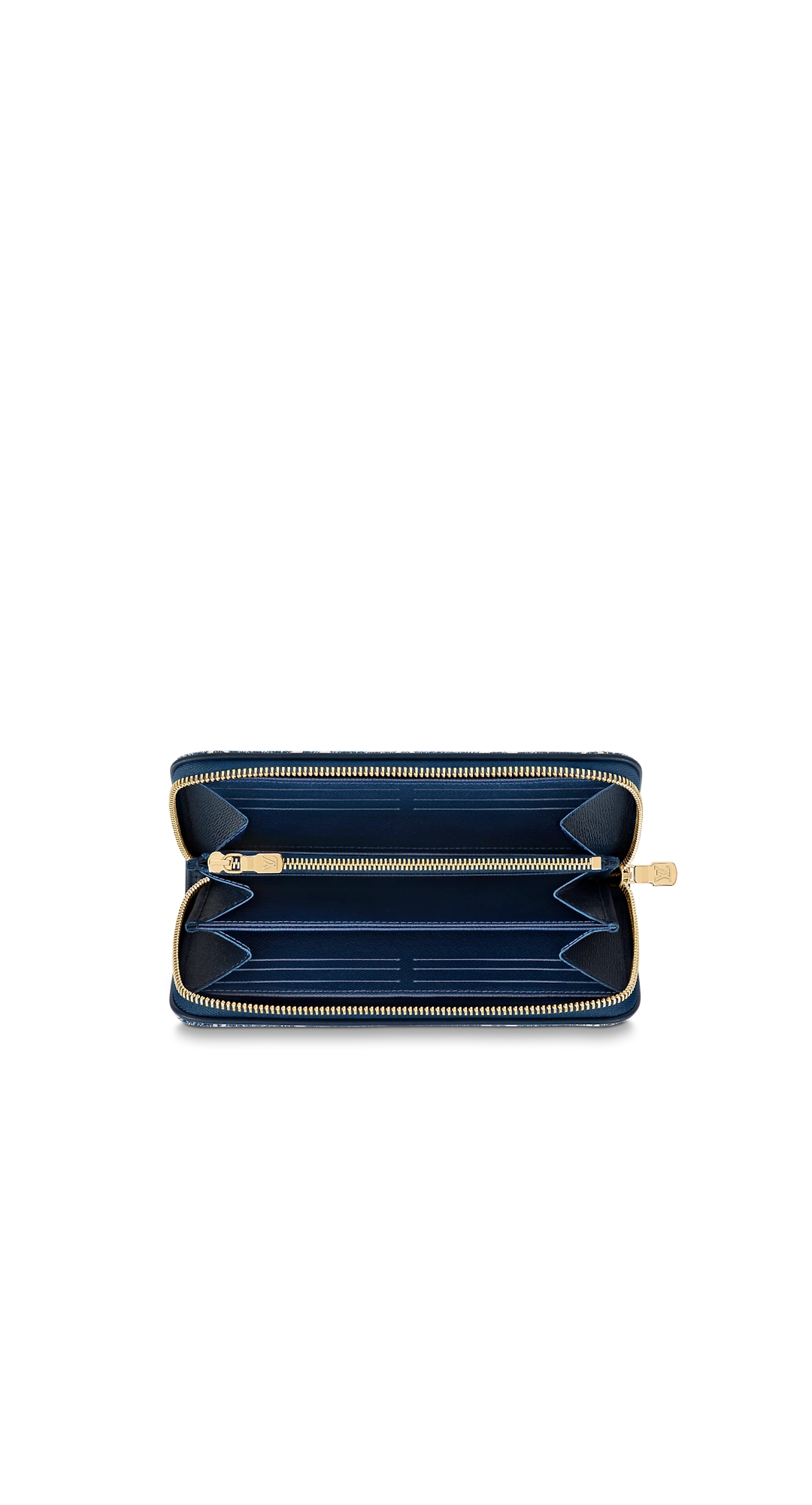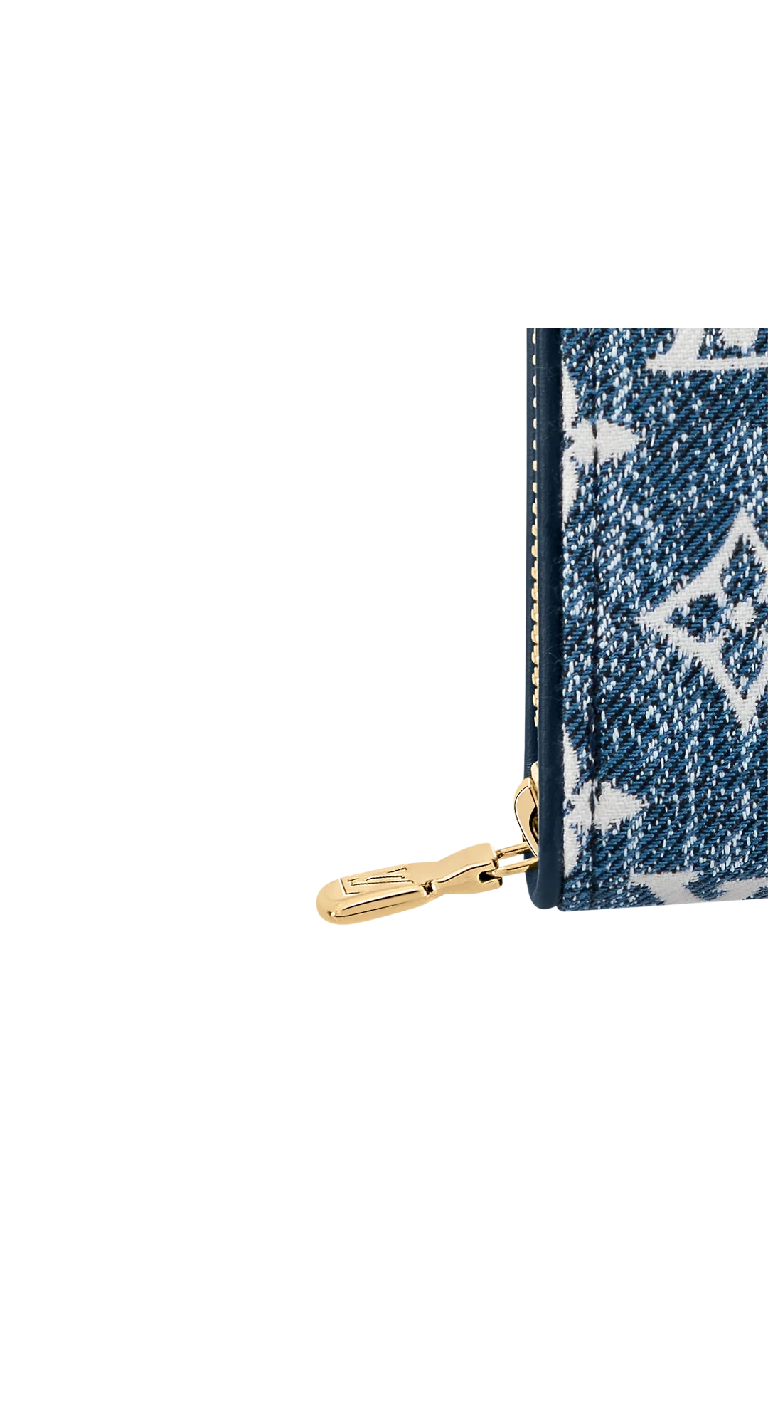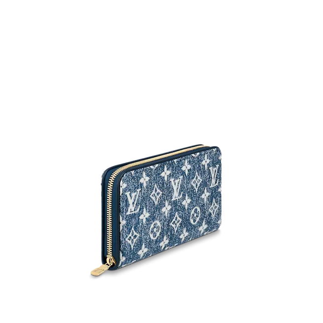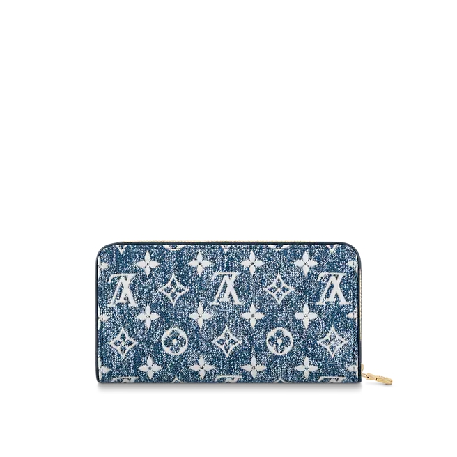 • The Zippy Wallet is made of monogrammed jacquard denim – a textile that expresses Louis Vuitton’s signature monogram pattern with a stonewash-like texture. Cowhide leather trimmings complete the iconic design with round zipper closure, as the name suggests. The interior is also attractive with three large compartments, multiple pockets and 12 card slots.